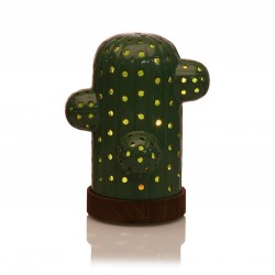 Ceramic cactus with dark wood base 10 Led Battery 3*AAA not included