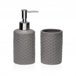 SET 2 PCS NIDO ABEJA GRIS Referencia: 22110071 Medidas: 6.8x6.8x17 cm. Material: Dolomita Packaging: CAIXA BRANCA Info: Tumbler 6,8x6,8x10,5cm Dispenser; 6,8x6,8x17cm