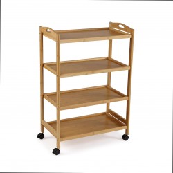 CARRINHO 4 PRATELEIRAS COM RODAS Referencia: 21810158 Medidas: 33.5x91.5x60.5 cm. Material: Bambu Madeira MDF Melamina Packaging: CAIXA BRANCA COM ADESIVO Info: Montagem necessária