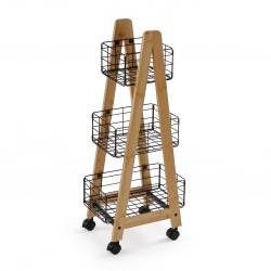 CARRO C/ RUEDAS 3 CESTAS NEGRO Referencia: 21810093 Medidas: 66x36x76 cm. Material: Madeira MDF Packaging: CAIXA BRANCA COM ADESIVO Info: Montagem necessária