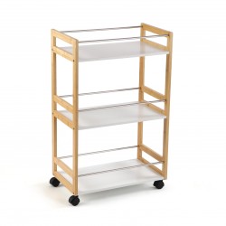 CARRINHO 3 PRATELEIRAS BRANCO BAMBU COM RODAS Referencia: 21810156 Medidas: 30x81x51 cm. Material: Bambu Madeira MDF Packaging: CAIXA BRANCA COM ADESIVO Info: Montagem necessária