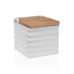 SALERO JOE TAPA BAMBÚ WHITE Referencia: 21890012 Medidas: 12.2x12.2x11.7 cm. Material: Ceramica Dolomita Packaging: CAIXA LITOGRAFADA Info: Bamboo lid