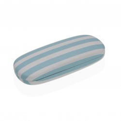 FUNDA GAFAS RAYAS AZULES Referencia: 22390140 Medidas: 16x6x3.5 cm. Material: Packaging: Info: 0.05 kg. Exterior tela poliester , interior PVC y metal