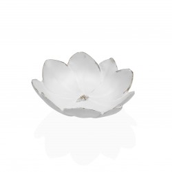 CENTRO DE MESA FLOR BRANCA Referencia: 20820061 Medidas: 18x18x4.5 cm. Material: Resina Packaging: CAIXA MARRON VERSA Info: 0.33333 kg. Versa Label