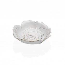 CENTRO DE MESA FLOR BRANCA Referencia: 20820052 Medidas: 24x24x7 cm. Material: Resina Packaging: CAIXA MARRON VERSA Info: 0.83333 kg. Versa Label