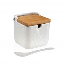 AÇUCAREIRO QUADRADO BRANCO FOLHAS 22110132 8.3x8.3x8.3 cm.