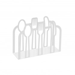 PORTA-GUARDANAPO METAL TALHERES BRANCO Referencia: 21470038 Medidas: 15x11.5x15 cm. Material: Metal Packaging: SACO PLÁSTICO Info: 0.1125 kg.