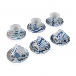 CONJUNTO 6 CAFÉ/PRATO MOTIVO MARINHO AZUL 20091347 5.8x6x5.8 cm.