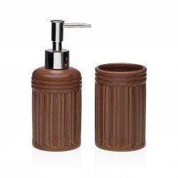 SET BAÑO 2 PCS TERRACOTA Referencia: 22110073 Medidas: 6.8x6.8x17 cm. Material: Dolomita Packaging: CAIXA BRANCA Info: Tumbler 6,8x6,8x10,5cm Dispenser 6,8x6,8x17cm
