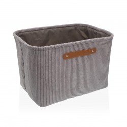 CESTA RETANGULAR CORDUROY CINZA CLARO Referencia: 19487283 Medidas: 38x26x25 cm. Material: Poliester PU Packaging: SACO PLÁSTICO Info: 0.3 kg.