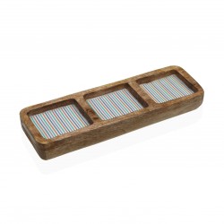 TRAVESSA TRÊS COMPARTIMENTOS OCEANIC Referencia: 17370607 Medidas: 10x30x3.5 cm. Material: Madeira de manga Packaging: Info: Apto: Adequado para contato com alimentos