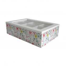 CAIXA DE CHÁ FIORELLA 6 COMPARTIMENTOS Referencia: 21920348 Medidas: 24x17x7 cm. Material: Vidro Madeira Packaging: SACO PLÁSTICO Info: Certificado: FSC Design próprio
