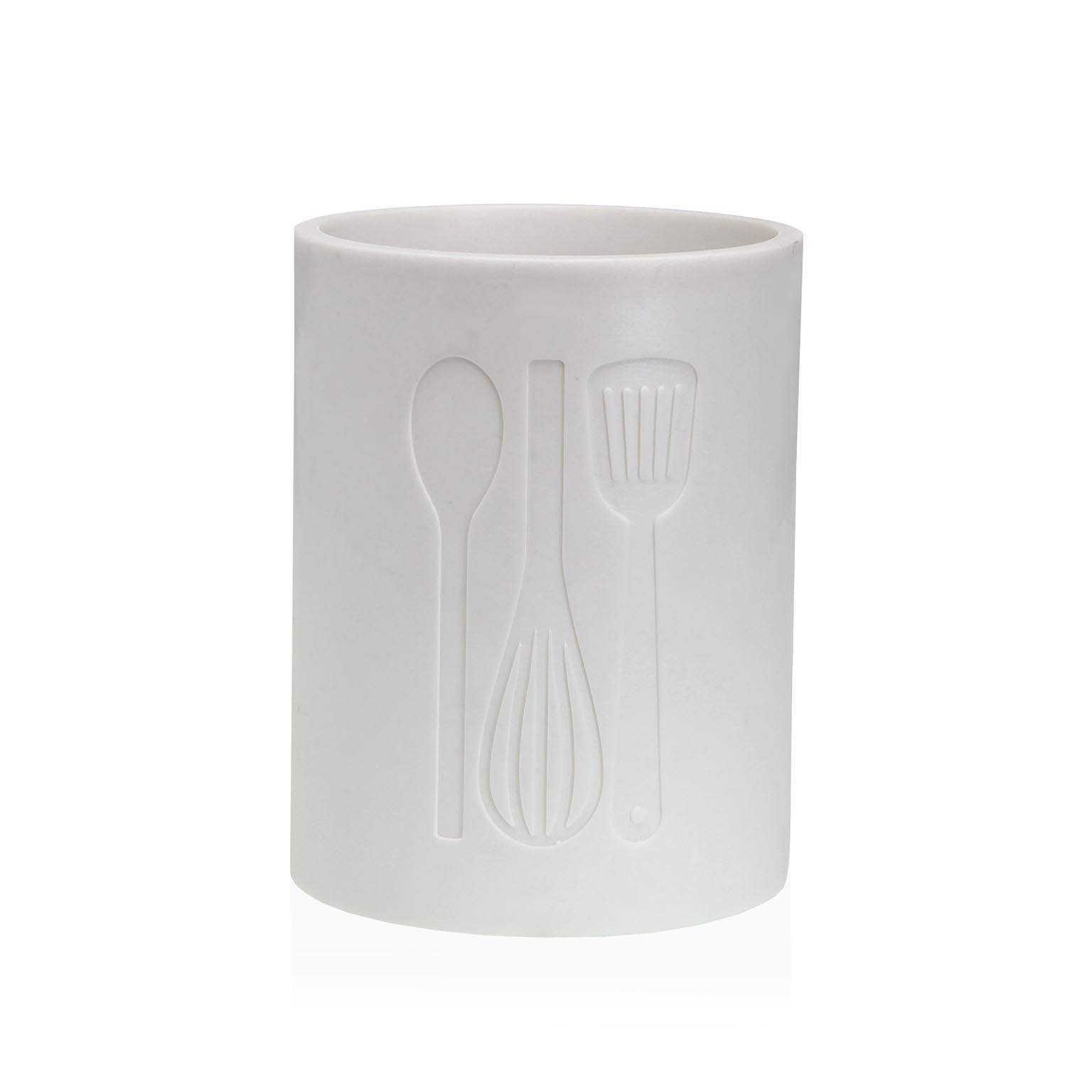O porta-utensílios de cozinha em branco é uma solução funcional e elegante para a organização dos utensílios de cozinha.