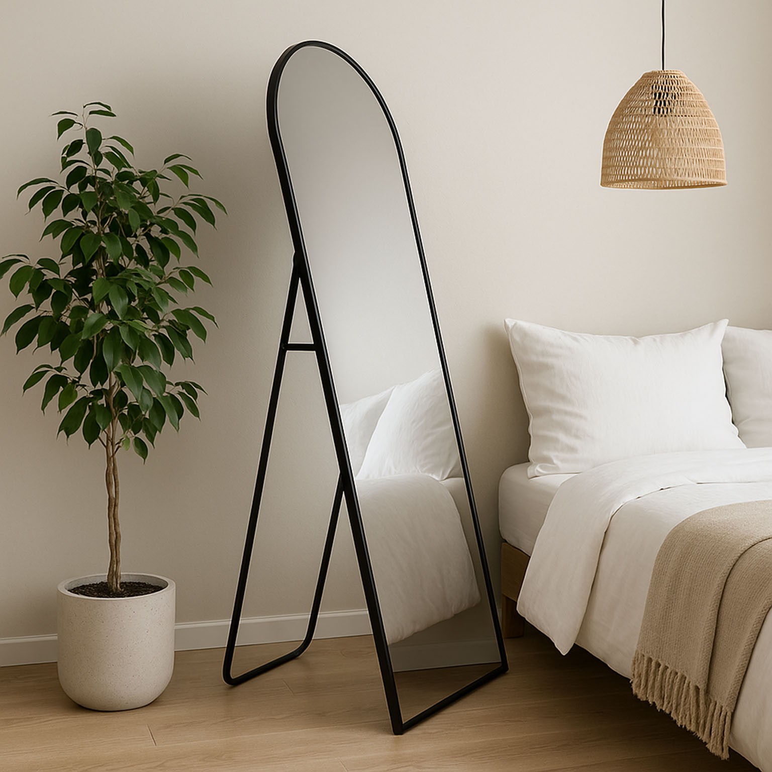 O Espelho de Pé Preto é um móvel auxiliar que combina funcionalidade e estilo moderno.