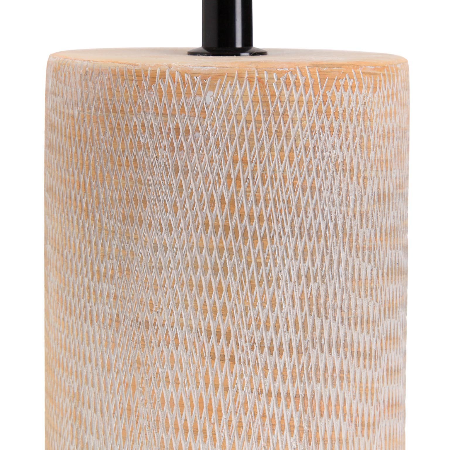 O candeeiro de mesa Yese combina elegância e funcionalidade, apresentando uma base em cerâmica e um abajur em tecido que emitem uma iluminação suave e acolhedora.