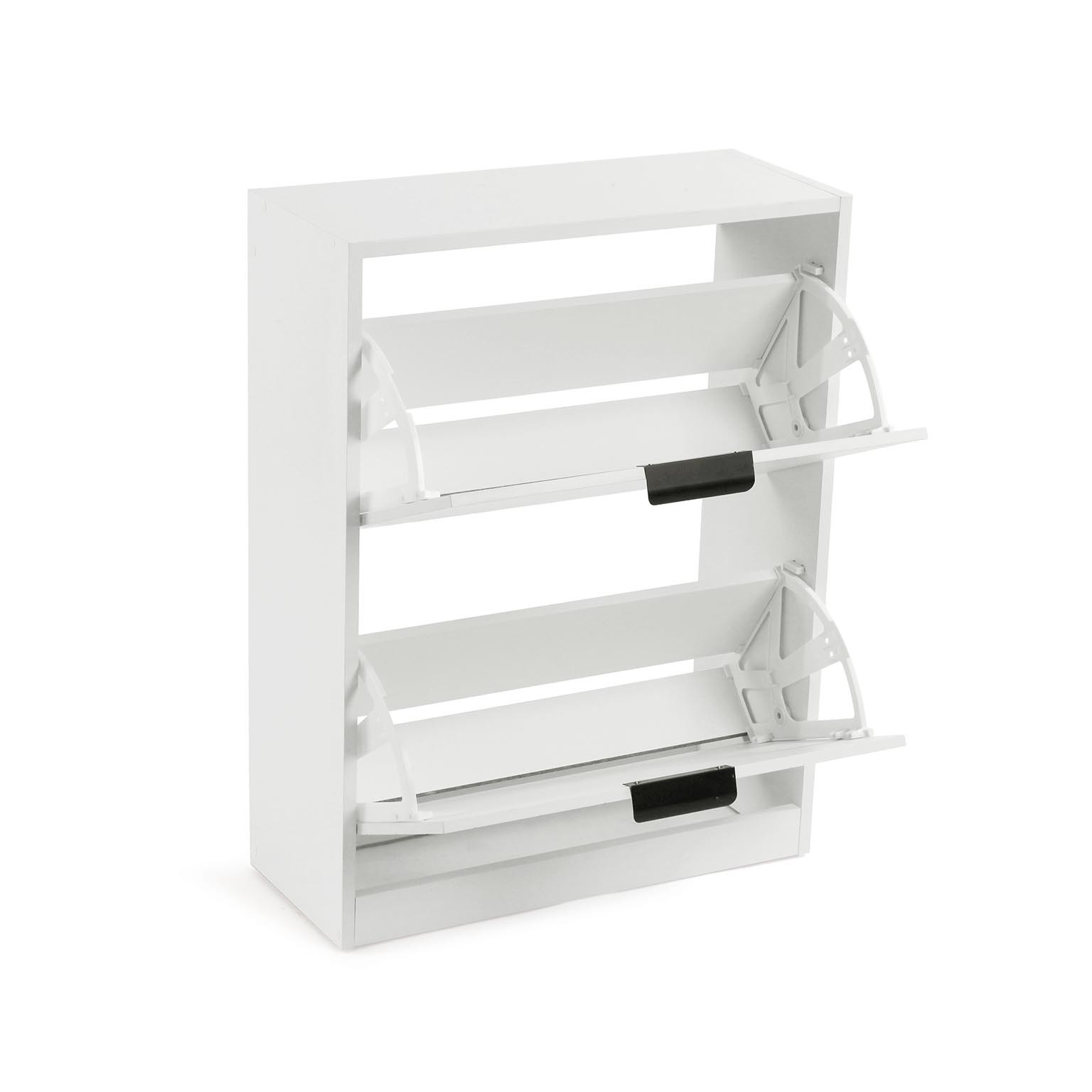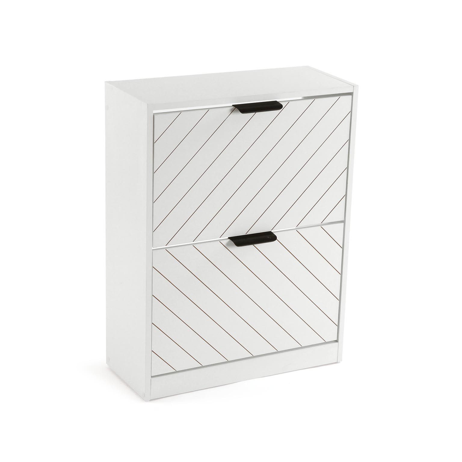 A sapateira 2 gavetas Niall em branco é uma solução funcional e elegante para a organização de calçados nos espaços do lar.