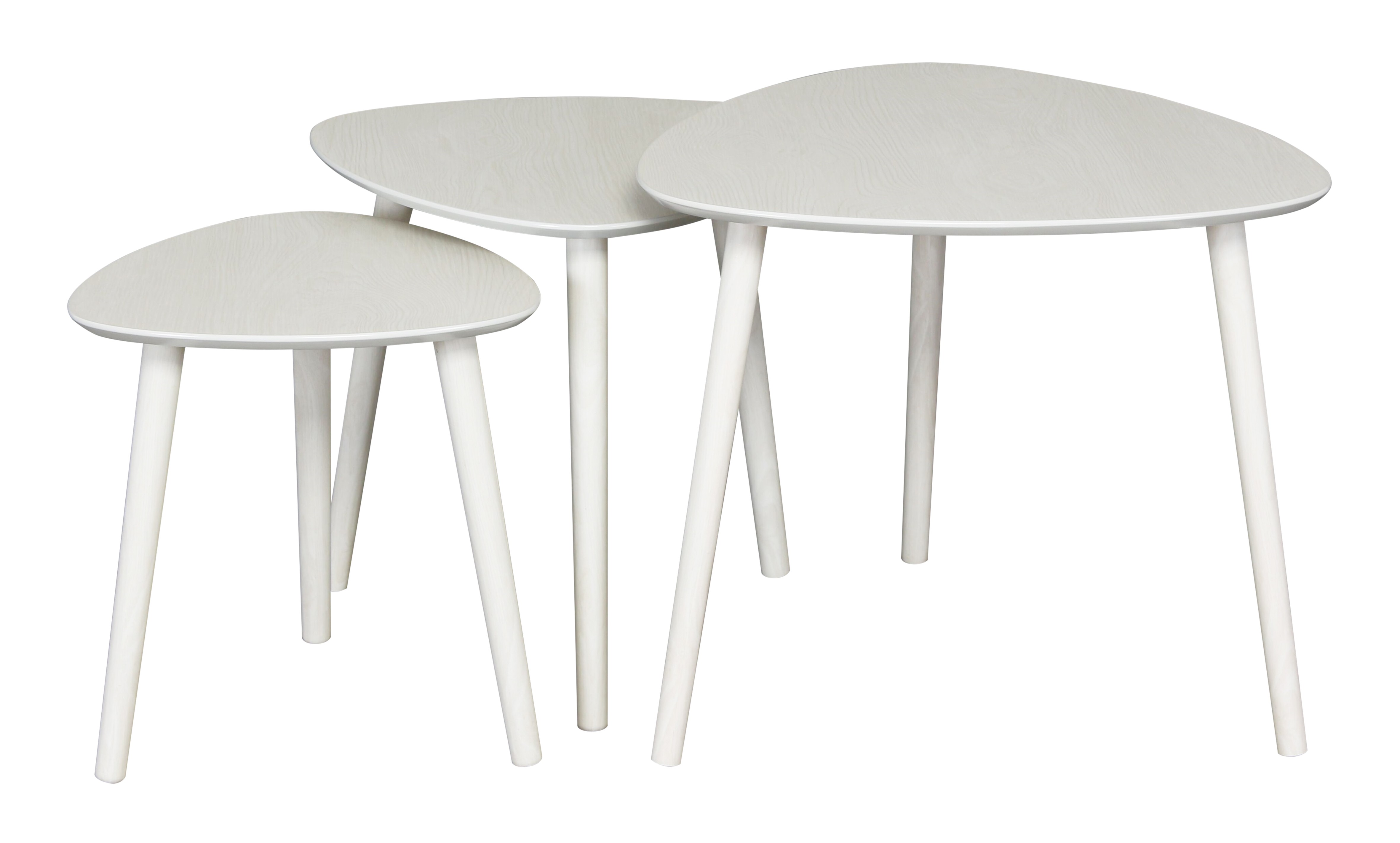 Este conjunto de 3 mesas auxiliares brancas, confeccionadas em madeira MDF, apresenta um design moderno e minimalista, ideal para complementar diversos ambientes.