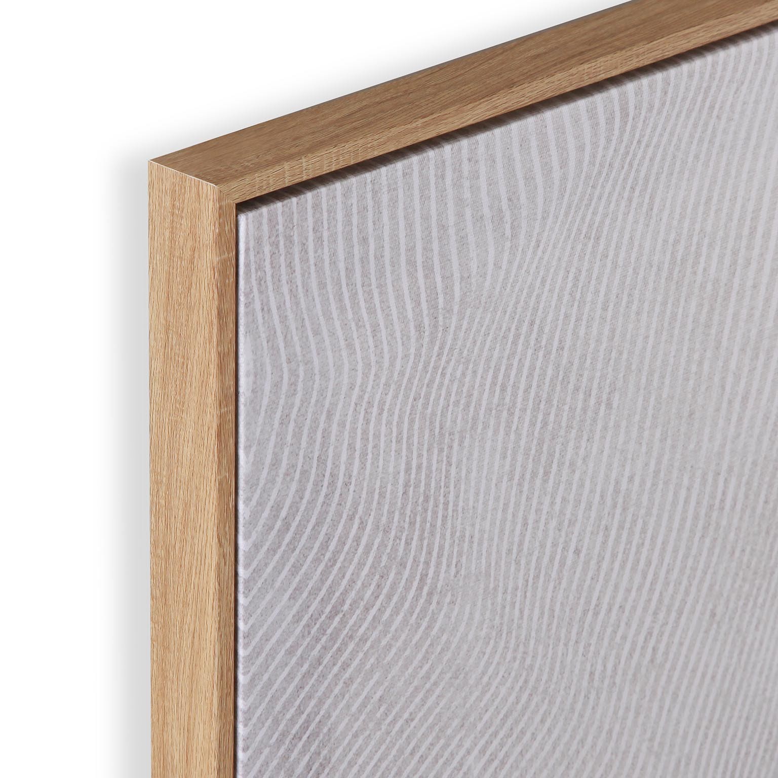 Com uma estrutura de madeira e uma superfície em tela, apresenta tons neutros de bege, cinza claro e branco, que se integram facilmente em diversos estilos de decoração.
