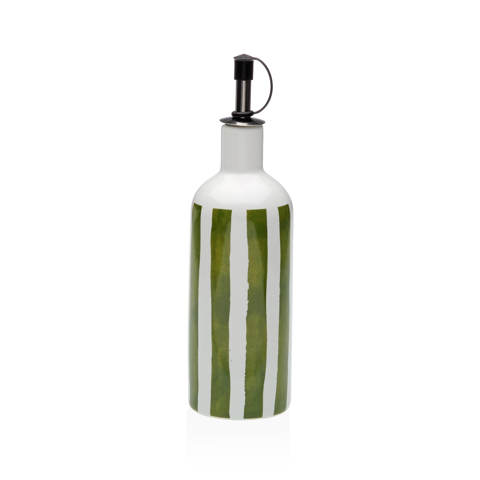O galheteiro riscas verde é um recipiente elegante e funcional, ideal para o armazenamento de azeite, vinagre ou outros líquidos.