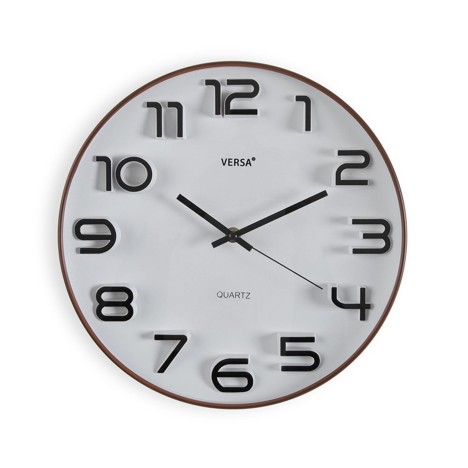 O design minimalista, com números e ponteiros em preto, proporciona uma leitura clara das horas, tornando-o ideal para cozinhas, salas de estar e escritórios.