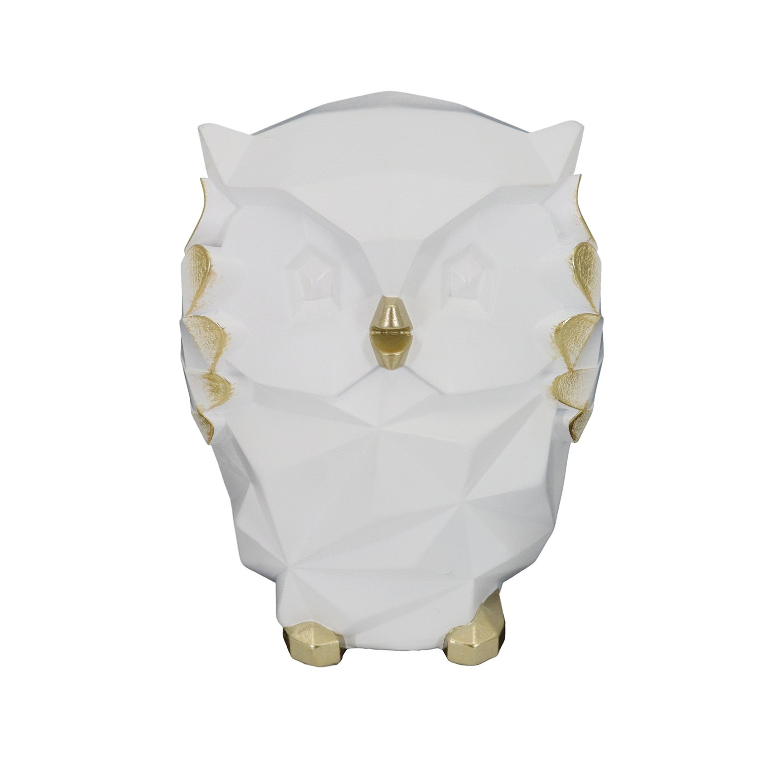 A figura decorativa coruja branca, com 12 cm de altura, 8,2 cm de largura e 9,2 cm de comprimento, é um candelabro elegante em resina, ideal para complementar a decoração de mesas, prateleiras ou aparadores.