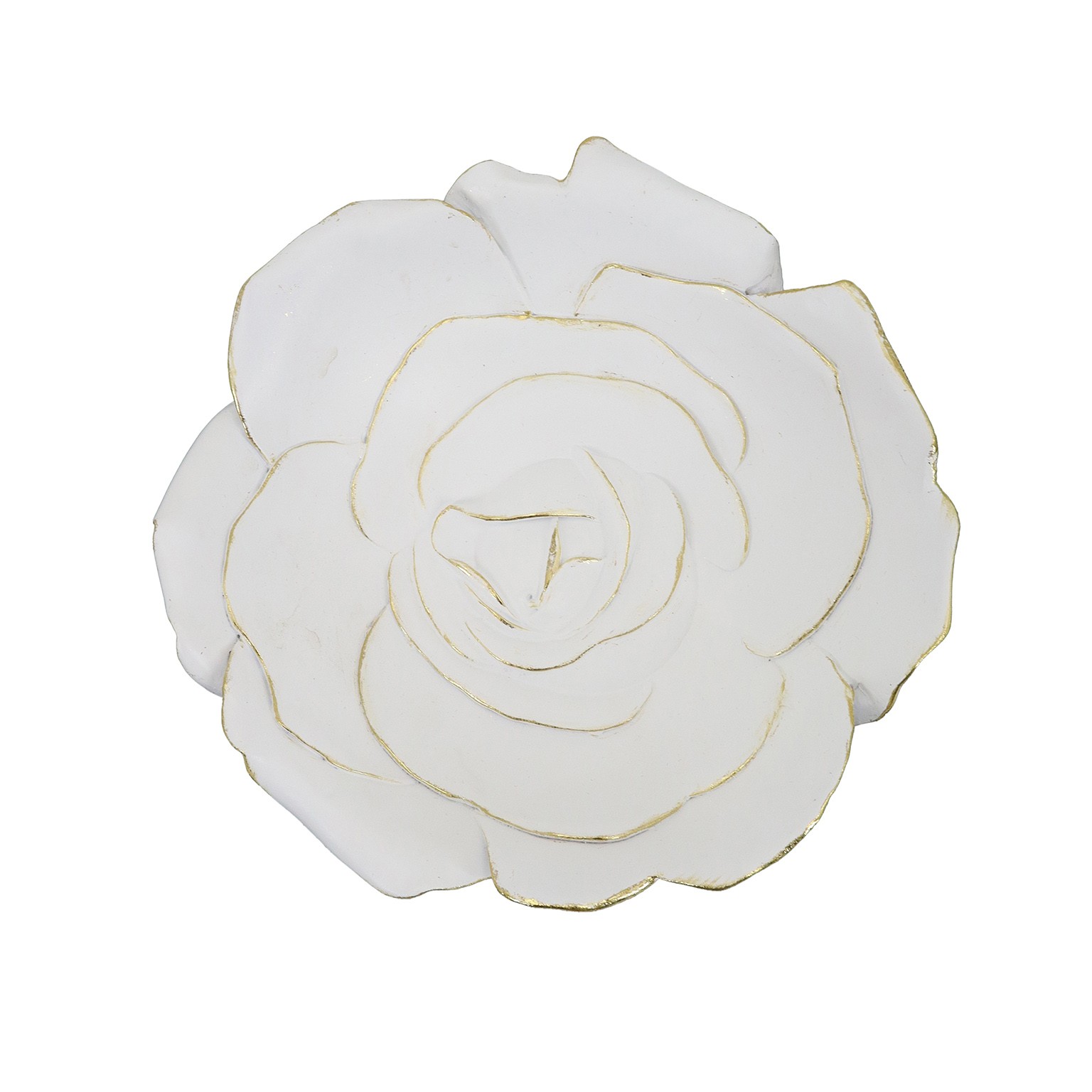 Centro de mesa em forma de flor branca, confeccionado em resina, com um design moderno e elegante.