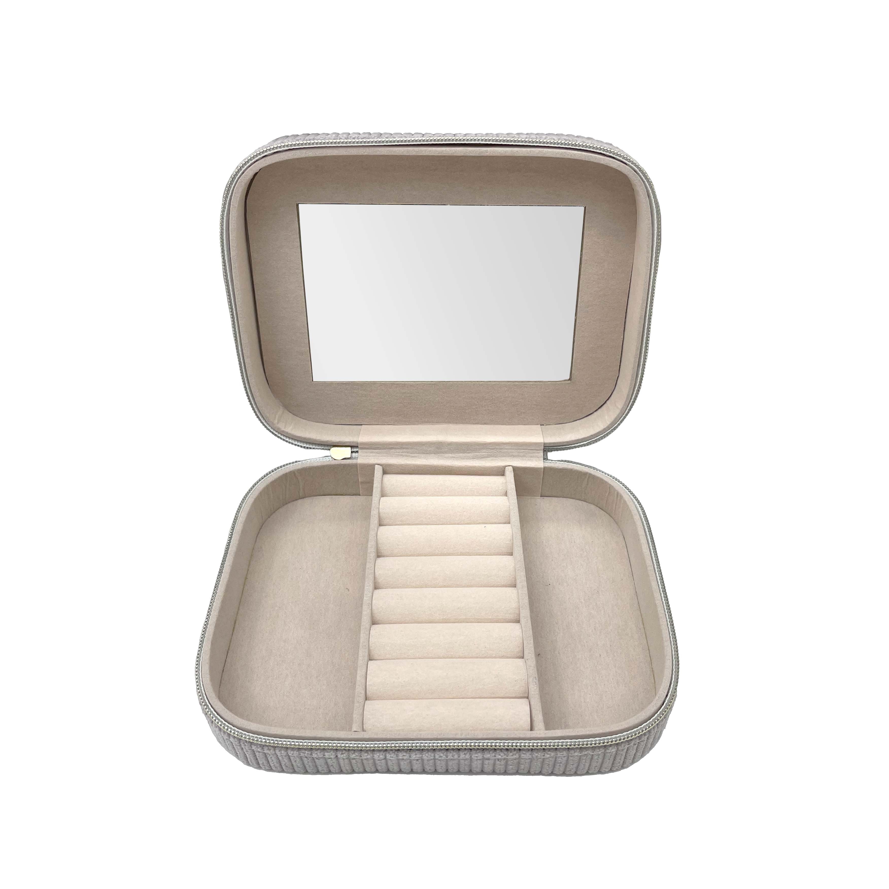 A caixa de joias em veludo cinza é a solução ideal para o armazenamento e organização de bijuterias e acessórios.