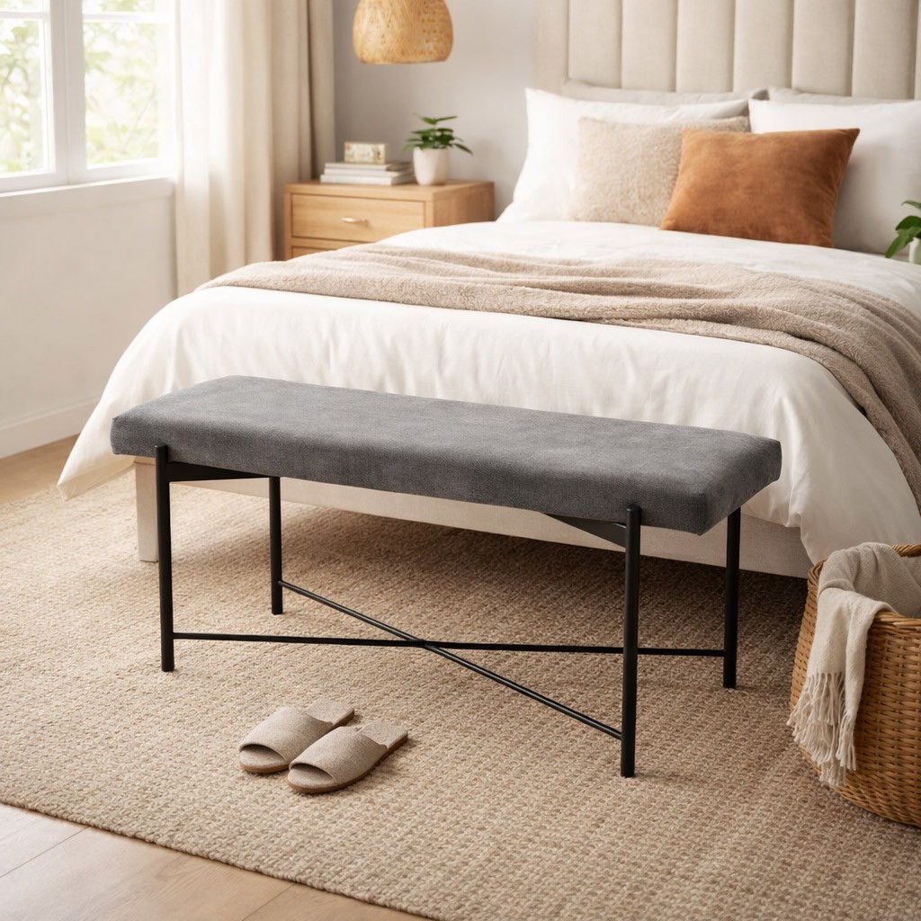 Com dimensões de 91 cm de comprimento, 40 cm de largura e 46 cm de altura (altura até ao assento de 38 cm), é ideal para ser colocado à beira da cama, servindo como um local prático para vestir- se ou para apoiar roupas e acessórios.