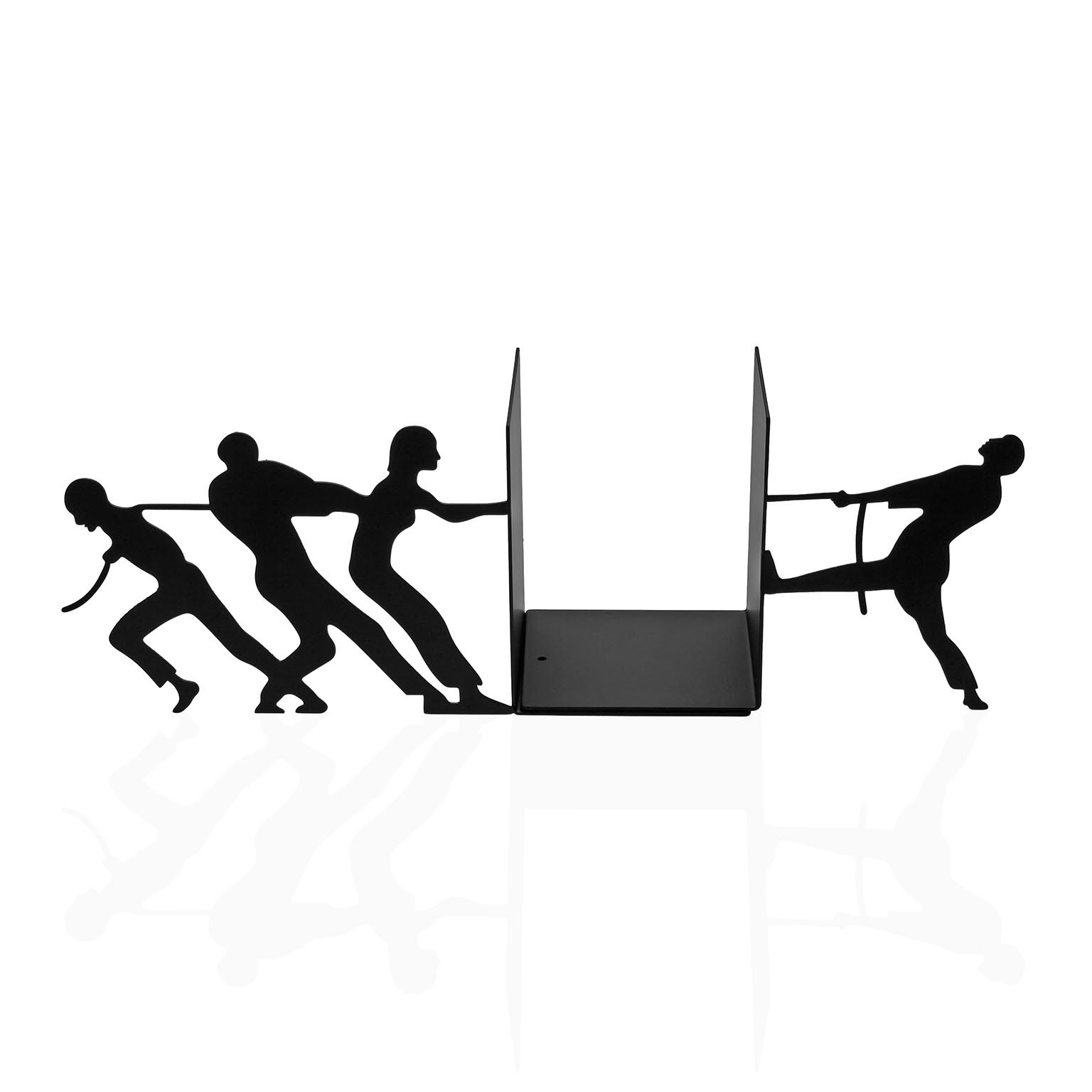 O fixador de livros Tiro de Corda é uma peça decorativa em metal, com um design moderno e minimalista, que combina funcionalidade e estilo.