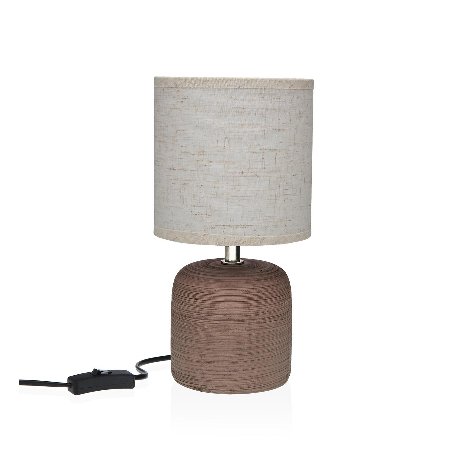 O candeeiro de mesa Brave Castanho combina uma base em cerâmica com uma elegante tulipa de tela, trazendo um toque rústico e moderno a qualquer espaço.