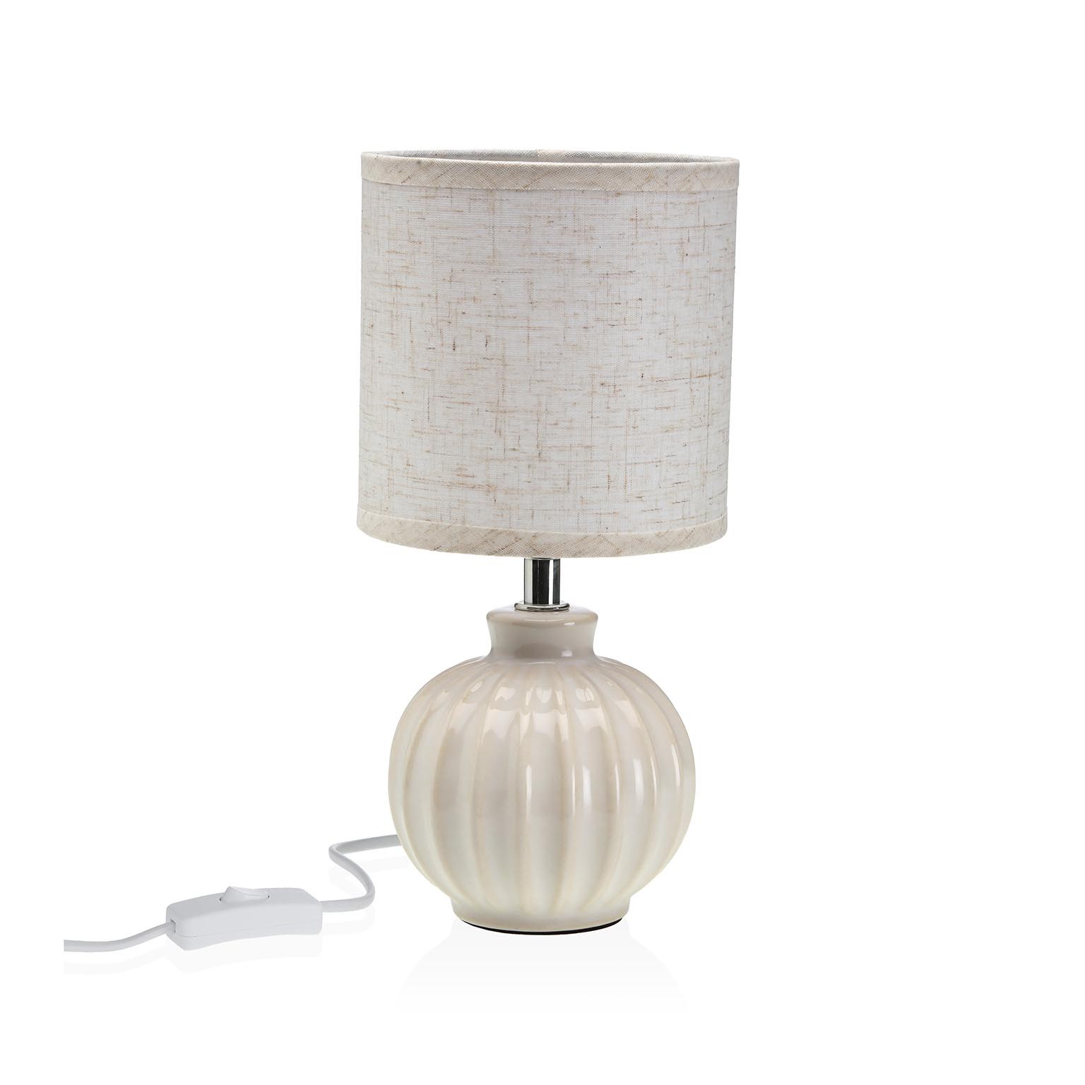 Com uma base em cerâmica e uma tulipa de tela, este candeeiro mede 27 cm de altura, 11 cm de largura e 13 cm de comprimento, tornando-se uma peça versátil para diversos ambientes.