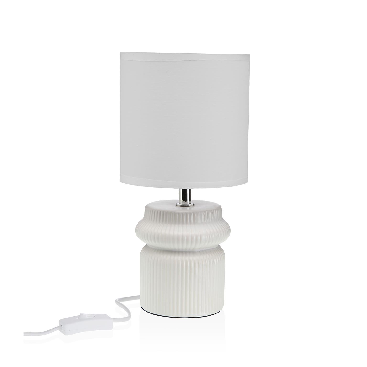 O candeeiro de mesa Creta Branco combina uma base em cerâmica com uma tulipa de tela, criando uma peça de iluminação que se destaca pela sua elegância minimalista.