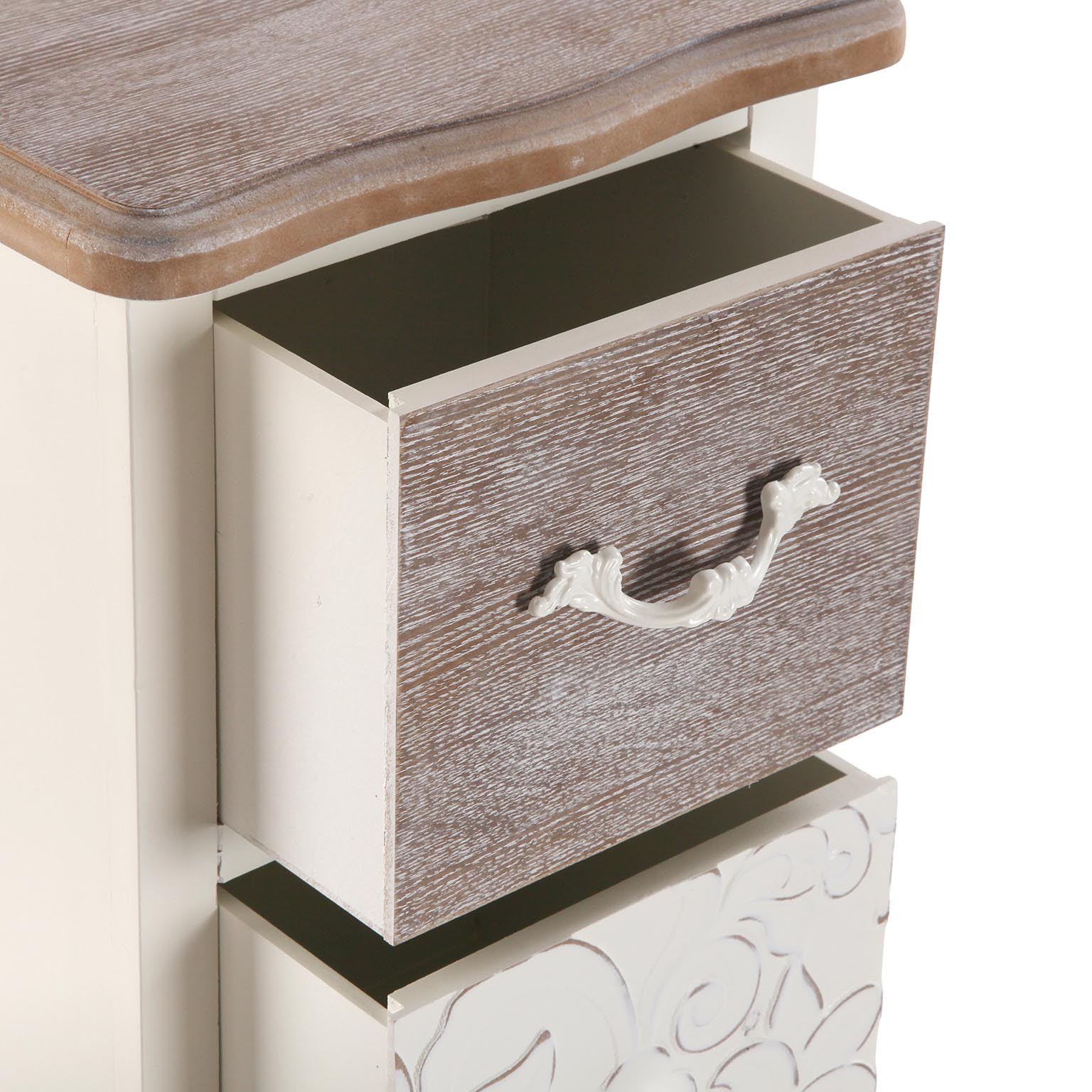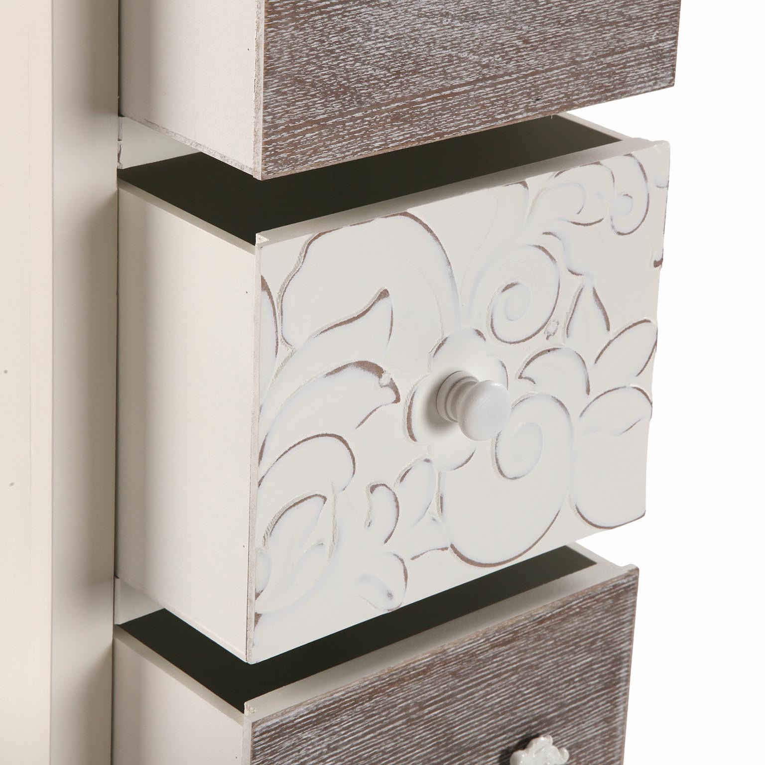 A cômoda rústica branca com 5 gavetas é uma peça de mobiliário auxiliar que combina funcionalidade e estilo.