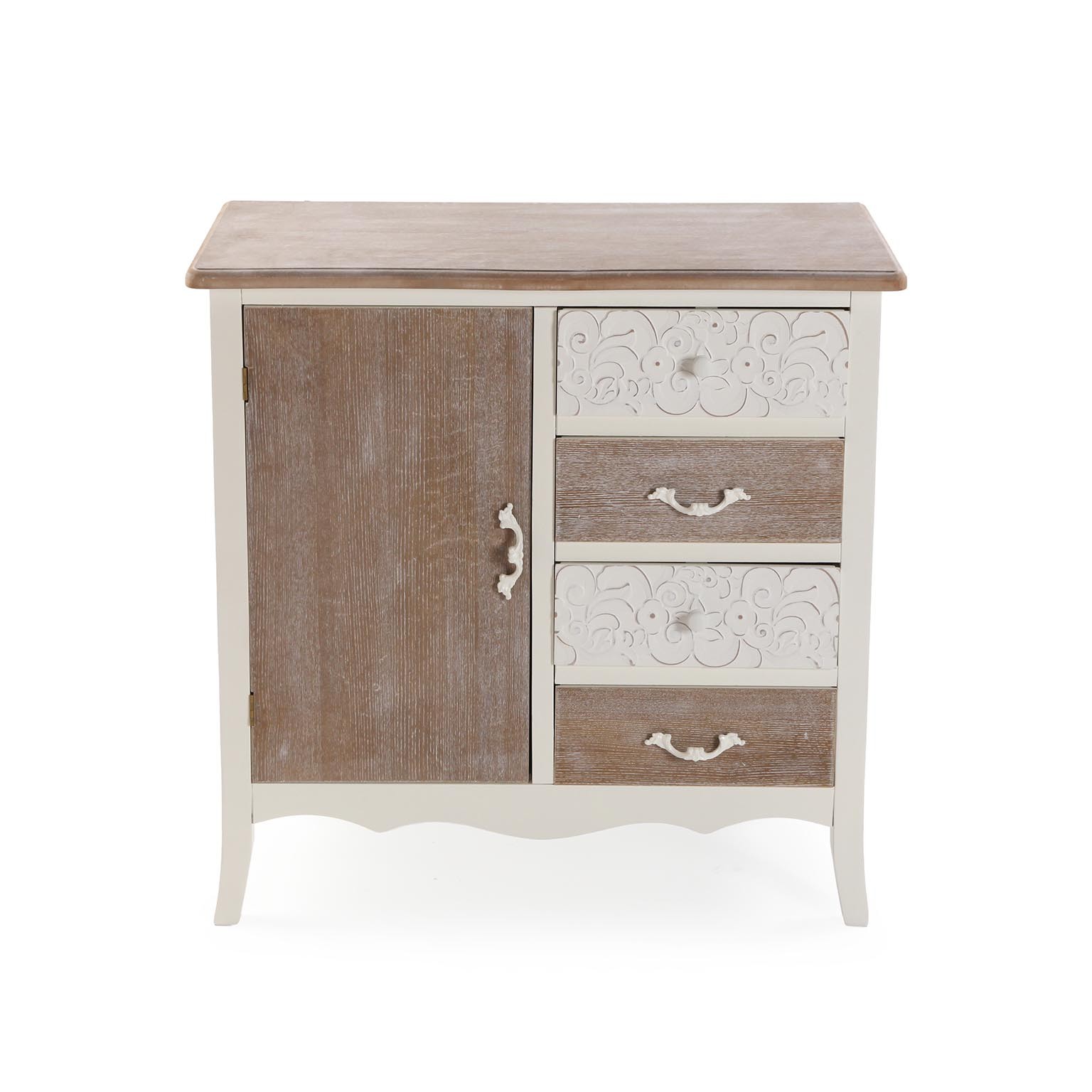 A cómoda rústica branca com 4 gavetas e 1 porta é uma peça funcional e elegante, ideal para complementar a decoração de entradas e salas de estar.