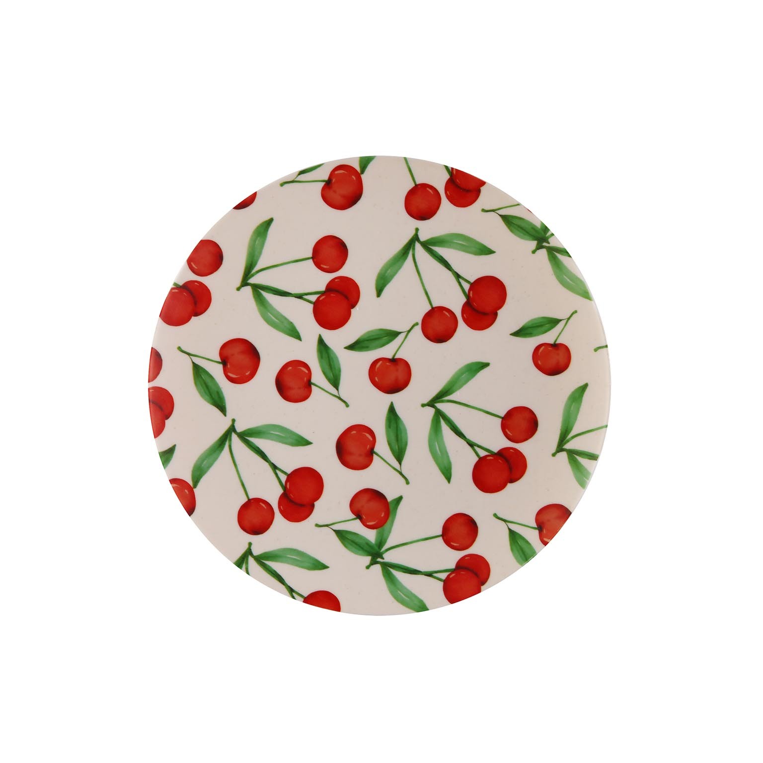 O prato redondo cerejas de 20 cm é uma peça versátil e decorativa, ideal para servir sobremesas ou frutas.