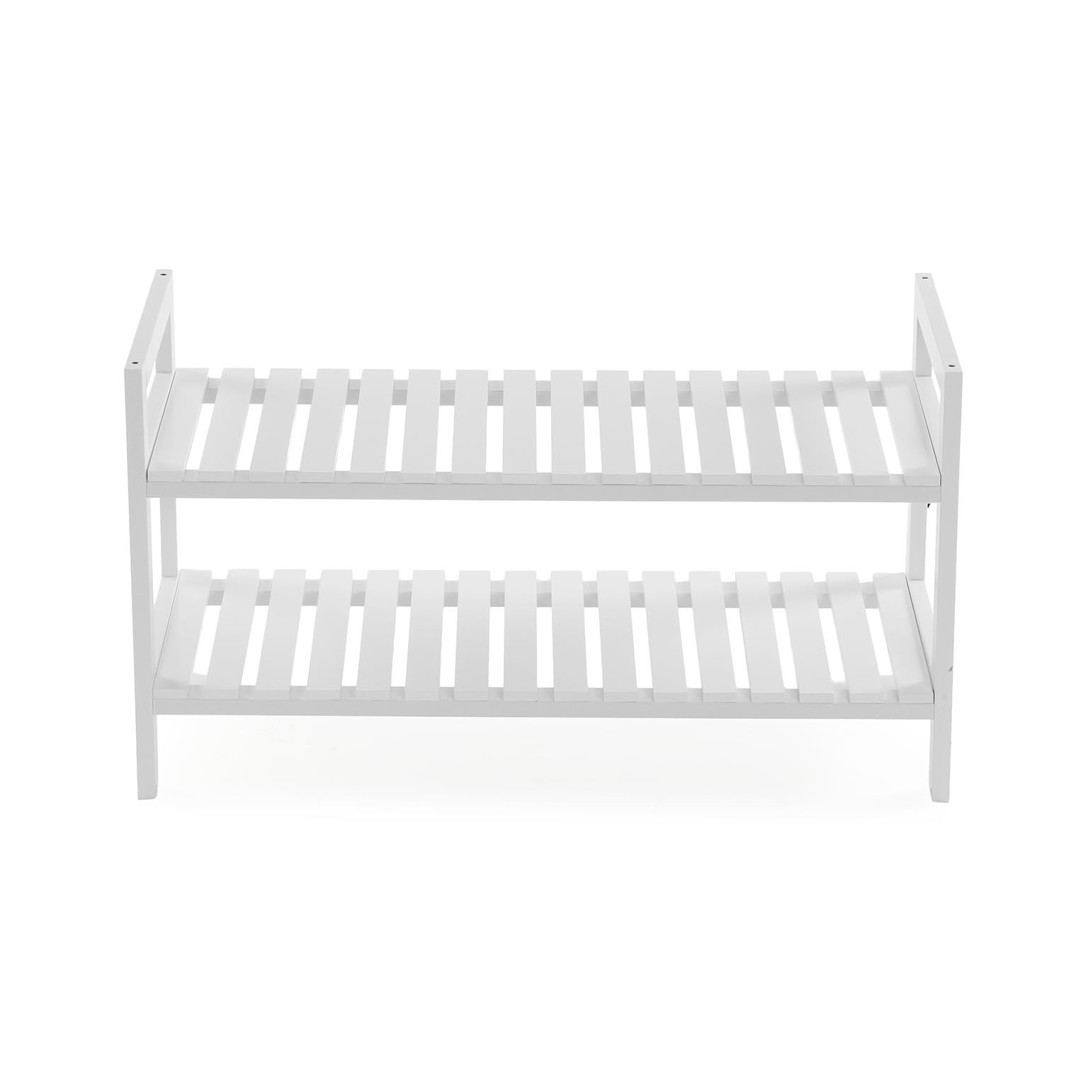 Prateleira de 2 níveis em madeira MDF, com dimensões de 40 cm de altura, 20 cm de largura e 70 cm de comprimento, ideal para otimizar o espaço na casa de banho.