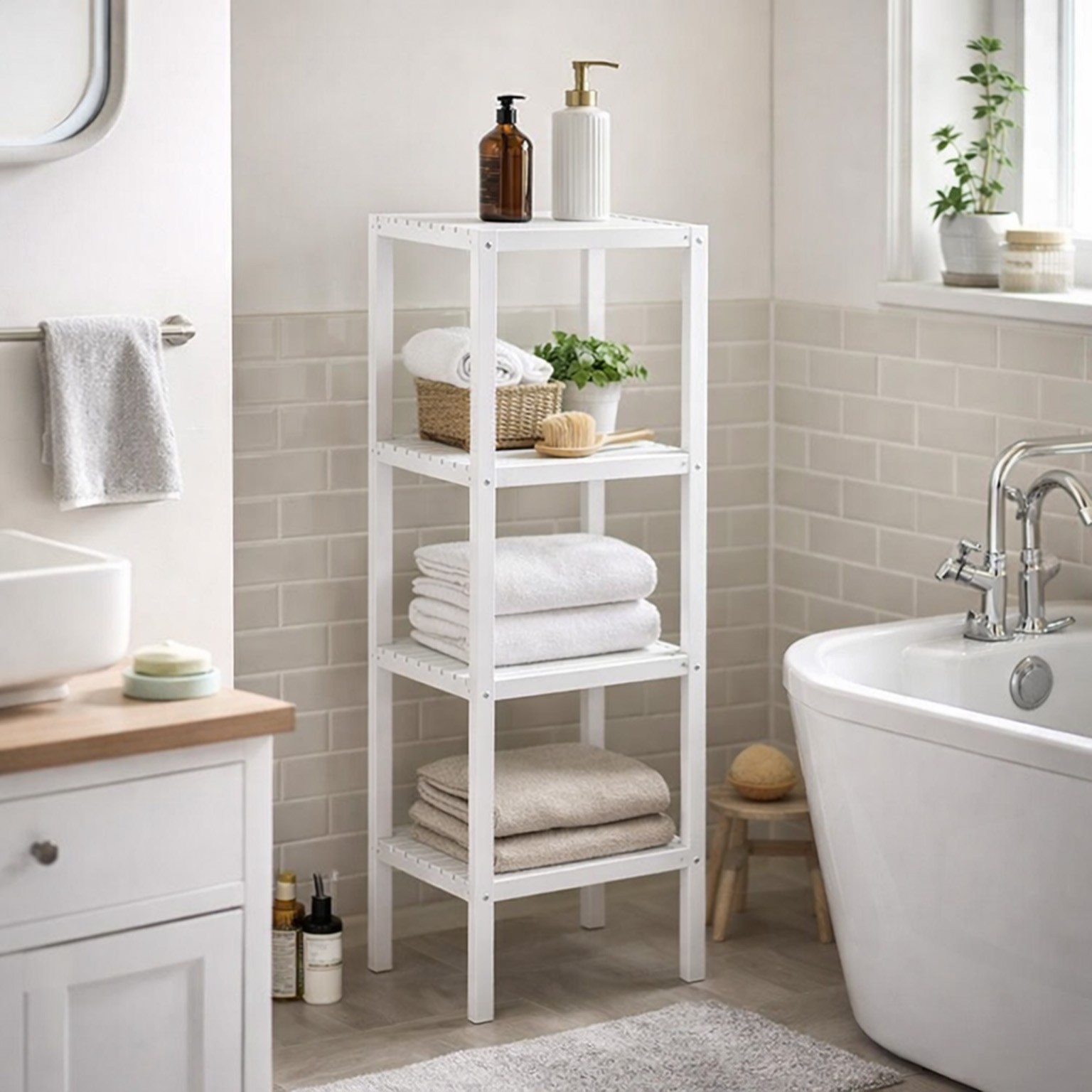 A prateleira de 4 prateleiras branca é uma solução funcional e elegante para a organização de espaços no lar.