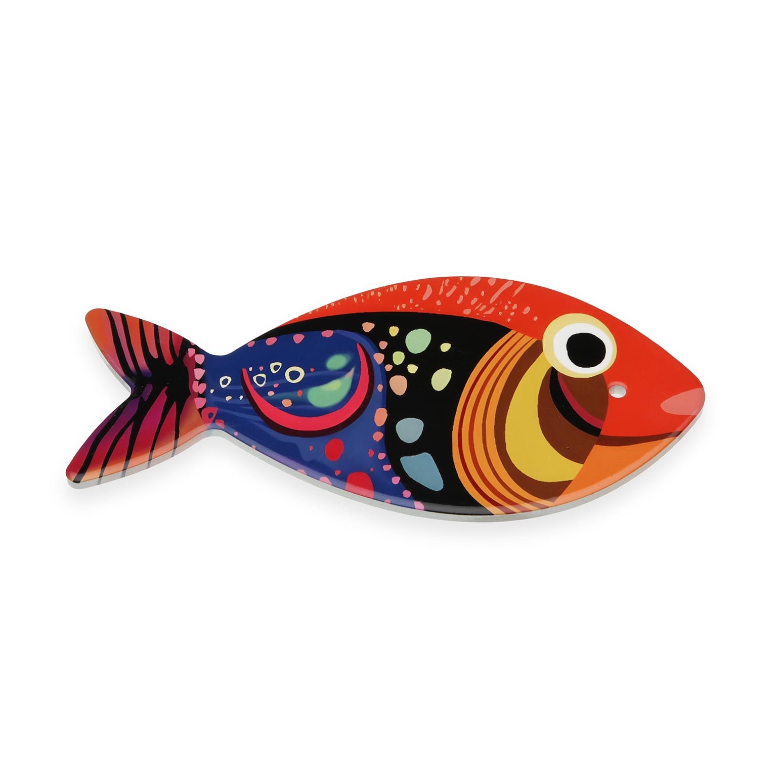 Base de tacho decorativa em cerâmica, com um vibrante design de peixe vermelho que traz um toque mediterrânico aos espaços do lar.