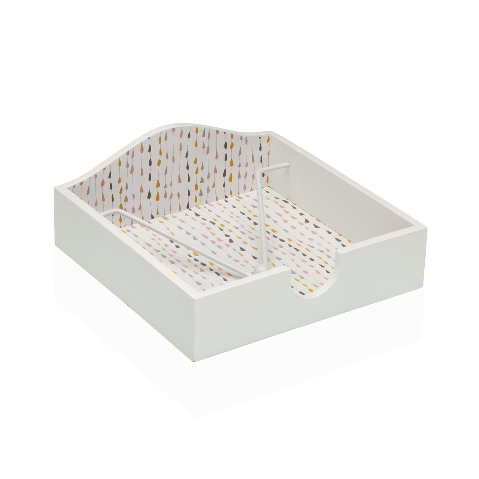 O porta-guardanapo Nordic Drops combina funcionalidade e estilo moderno, apresentando uma estrutura em aço robusto e uma base em madeira MDF, ideal para complementar qualquer mesa.