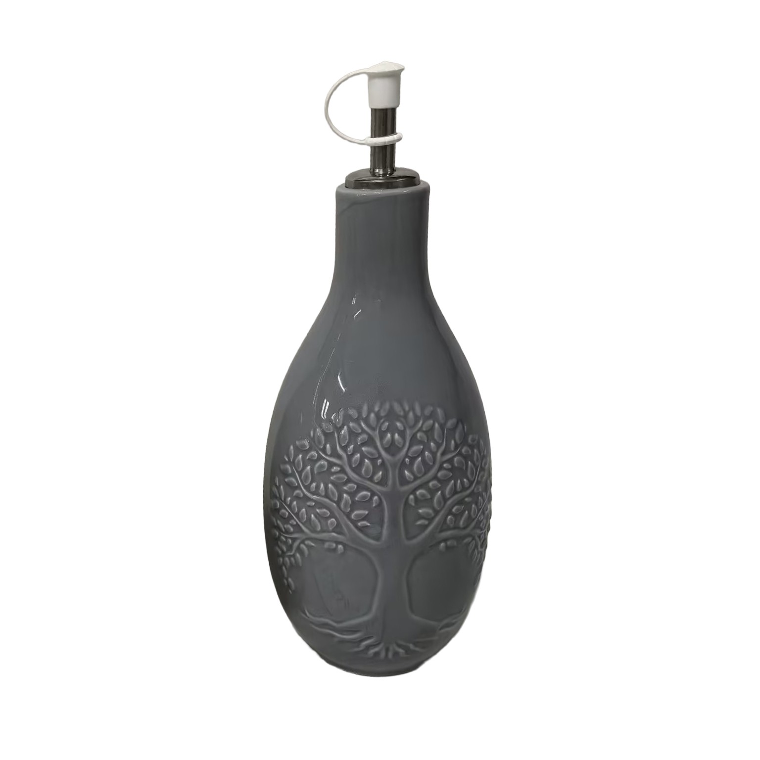 O galheteiro cinza árvore, com uma altura de 20,5 cm e dimensões de 9 x 9 cm, é um recipiente de cerâmica que combina funcionalidade e estética.