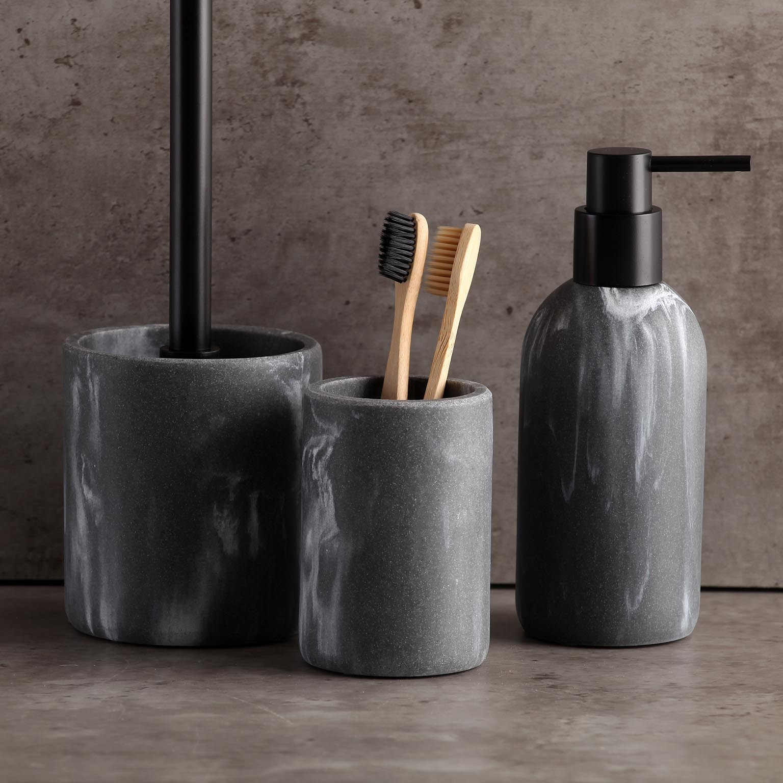 Fabricado em resina, oferece durabilidade e resistência à umidade, enquanto o seu tom cinza pedra, com nuances marmorizadas, confere um toque moderno e elegante.