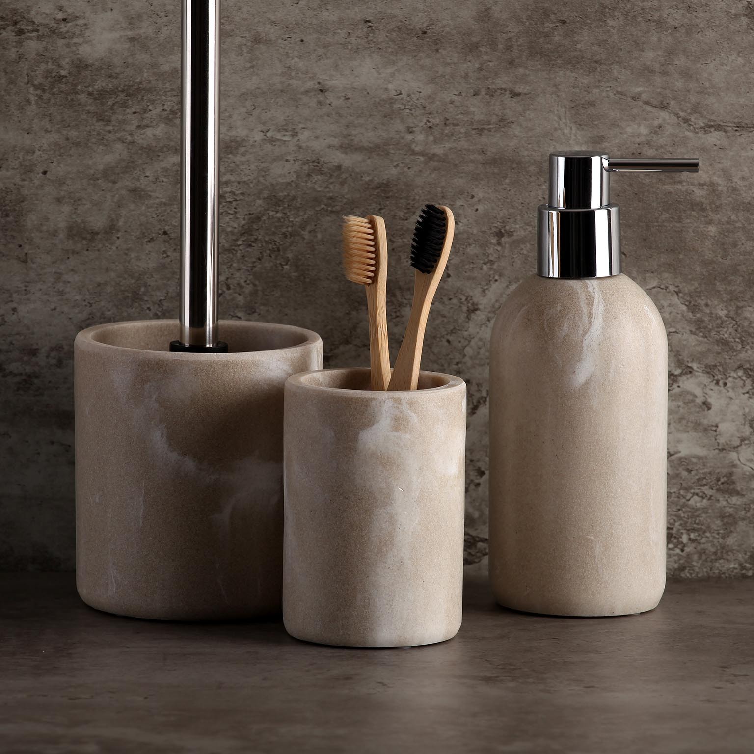 O escovilhão Monza bege pedra é um acessório essencial para a casa de banho, projetado para a limpeza eficaz de sanitários.