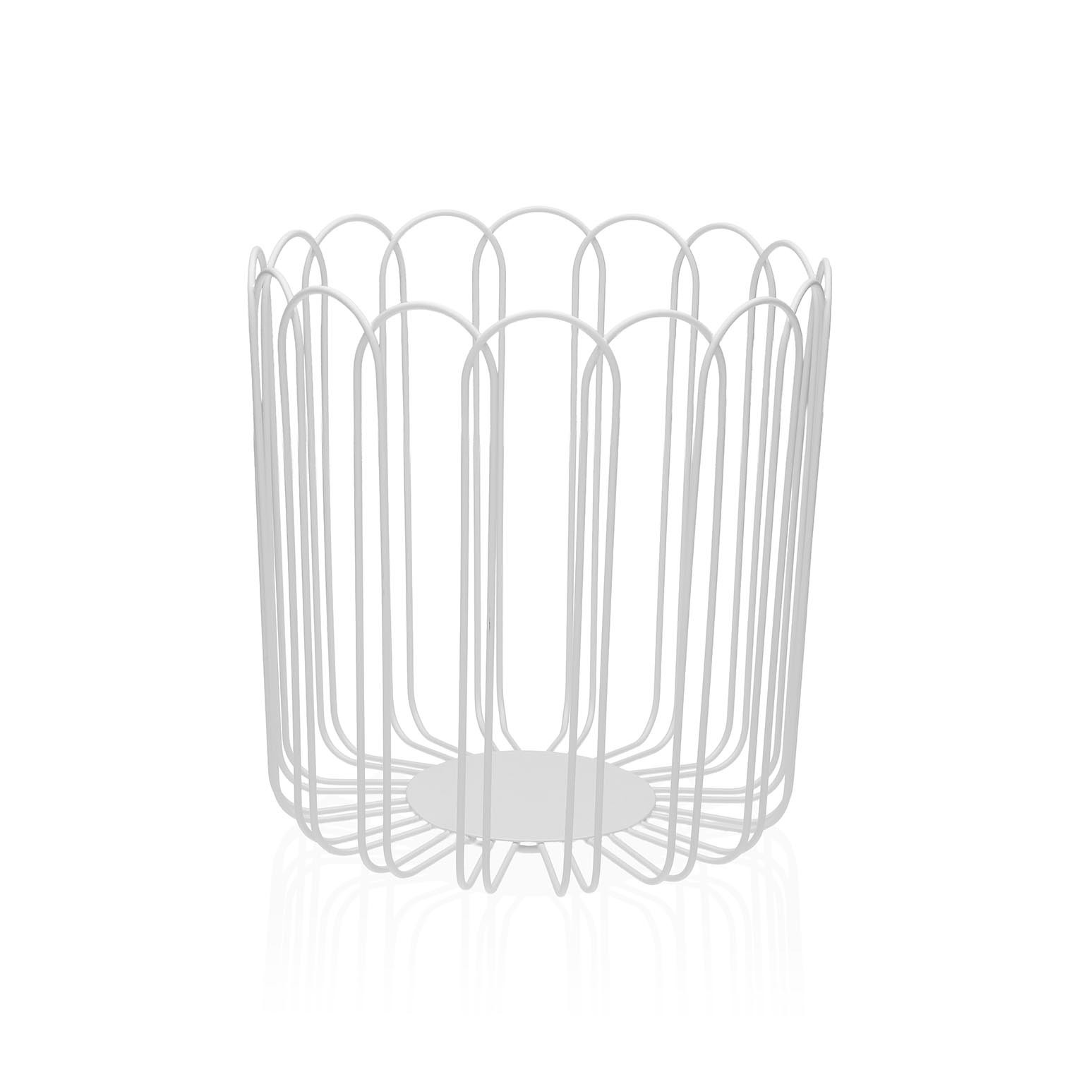 Fruteira alta branca em metal, com 22 cm de altura, ideal para armazenar e exibir frutas de forma elegante.