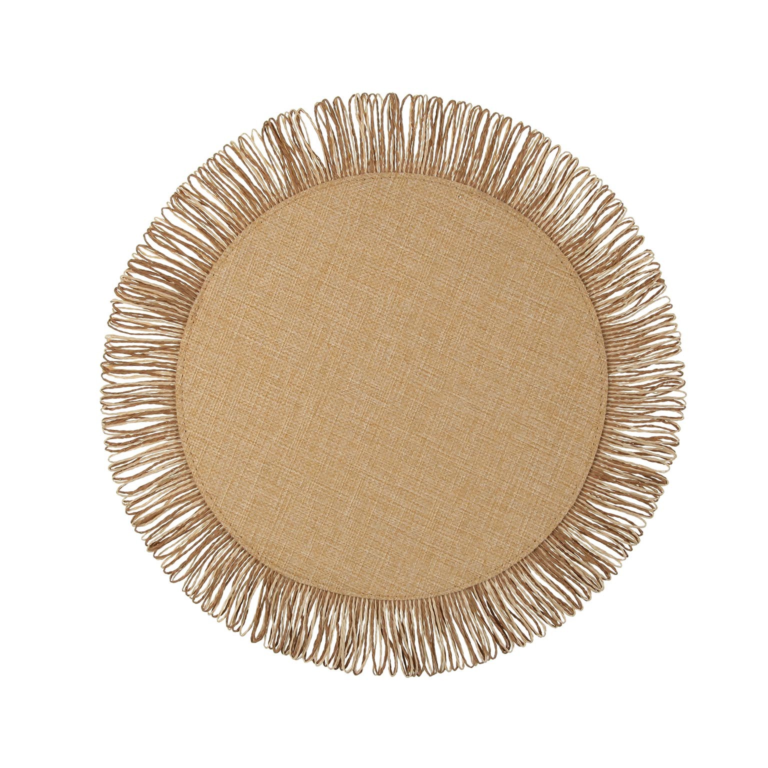 O individual papel redondo castanho é uma solução prática e estética para o serviço de mesa, com dimensões de 38 cm de largura e comprimento, e 1 cm de altura.
