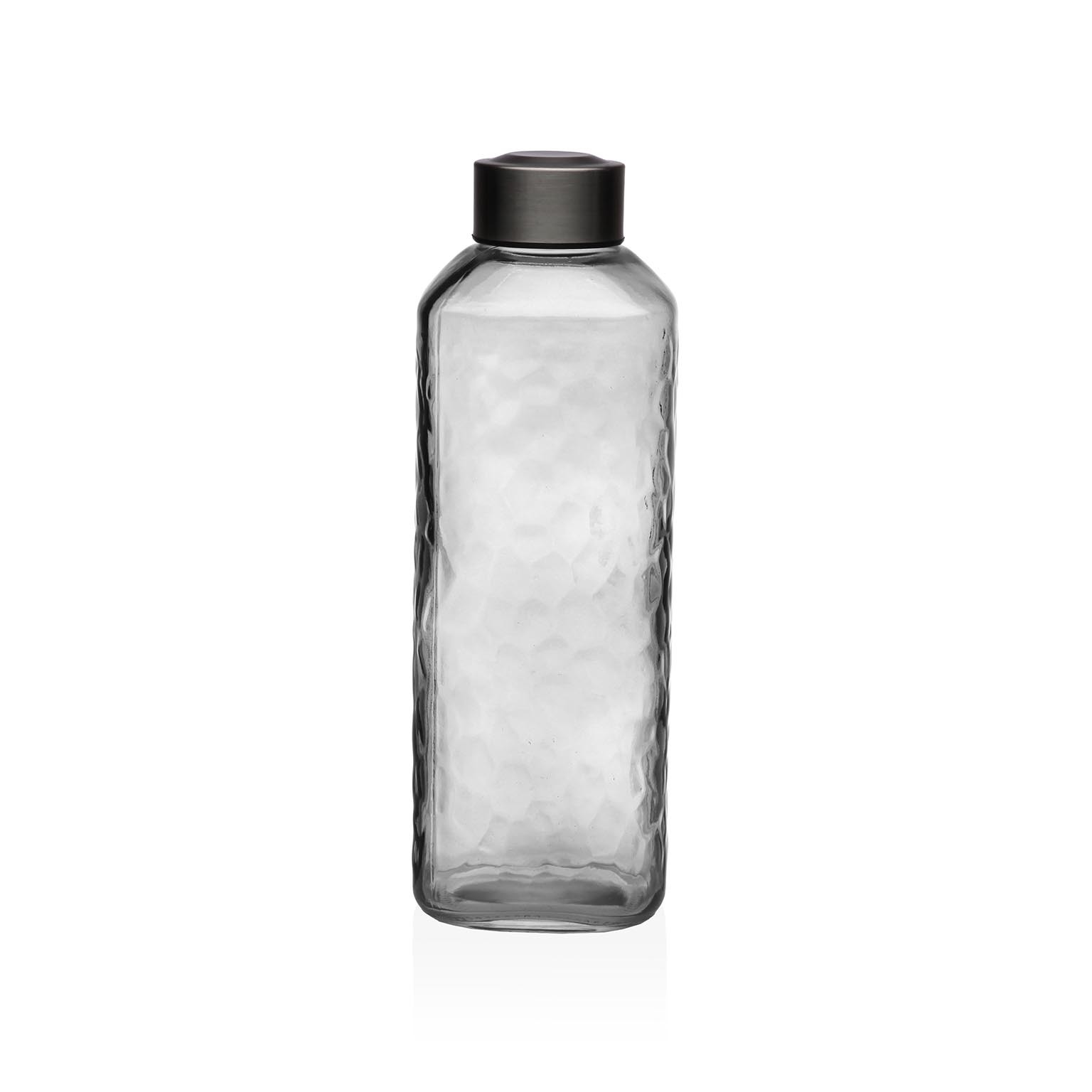 A garrafa de vidro transparente de 1L é um recipiente funcional e elegante, ideal para o armazenamento de líquidos como água ou sucos.