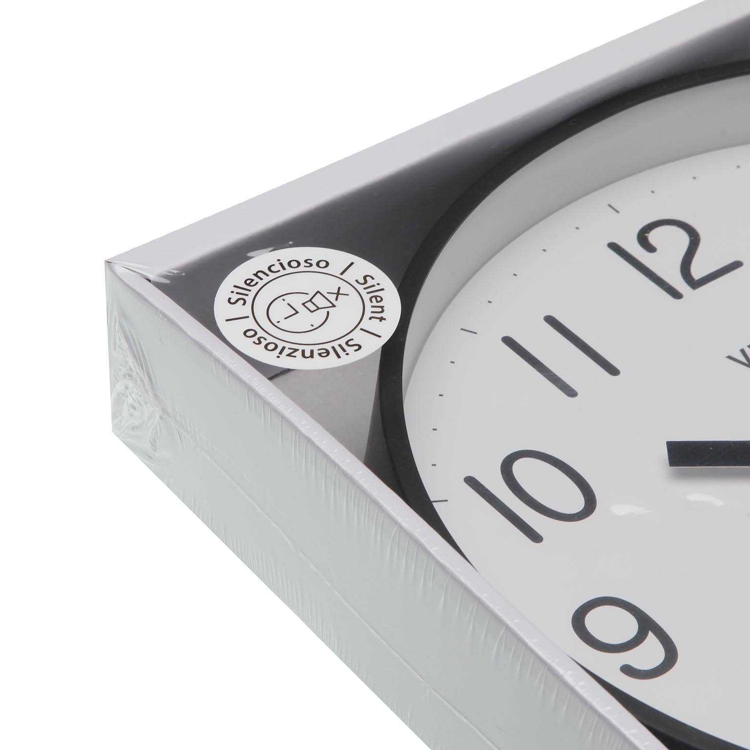 Relógio de parede preto com 25 cm de diâmetro, ideal para ambientes de cozinha e outros espaços do lar.
