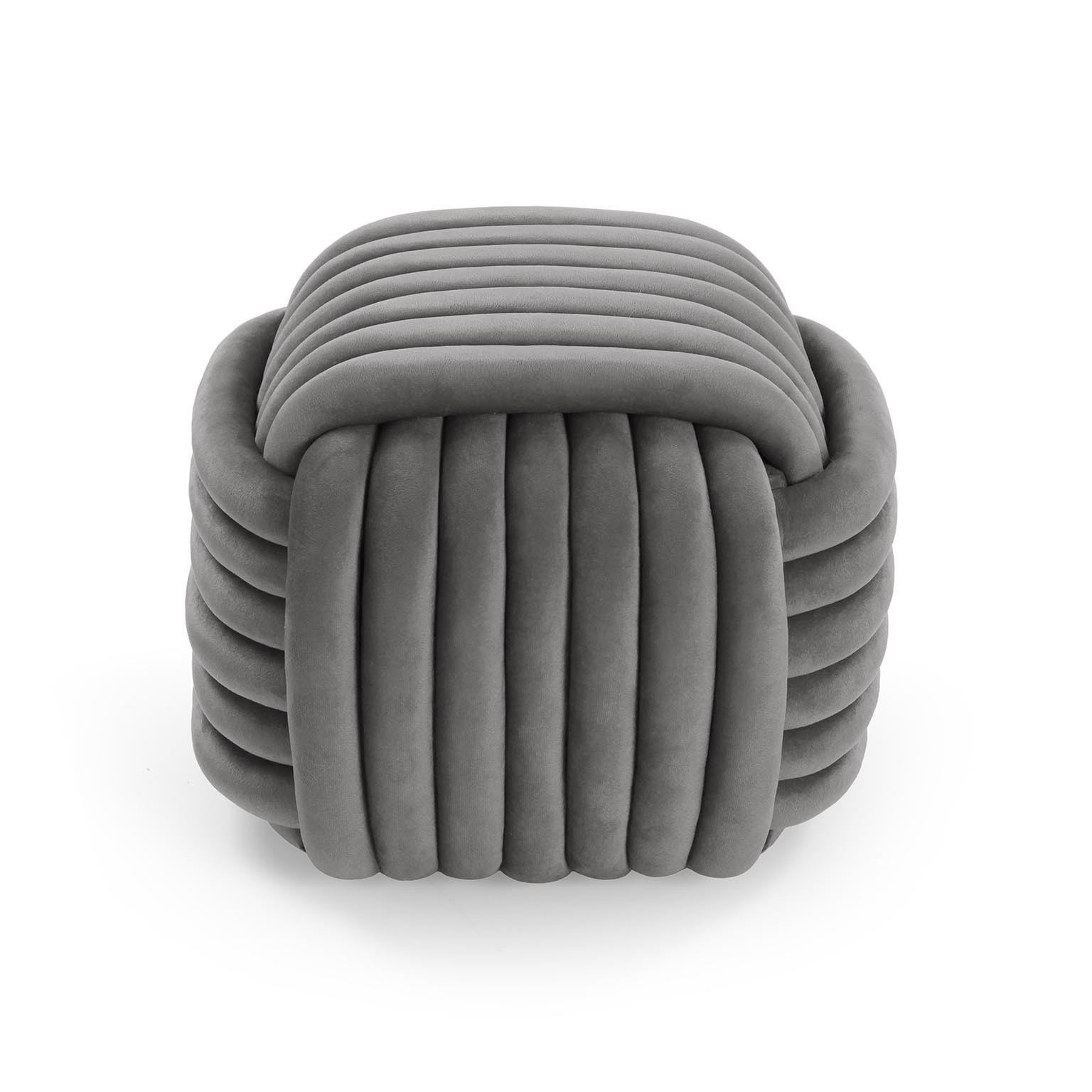 O pufe quadrado cinza claro Knot é um móvel auxiliar versátil que combina funcionalidade e estilo contemporâneo.