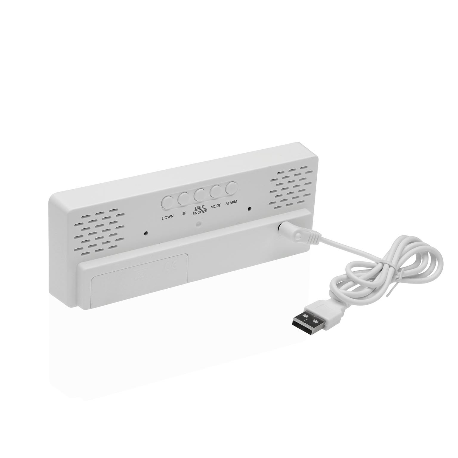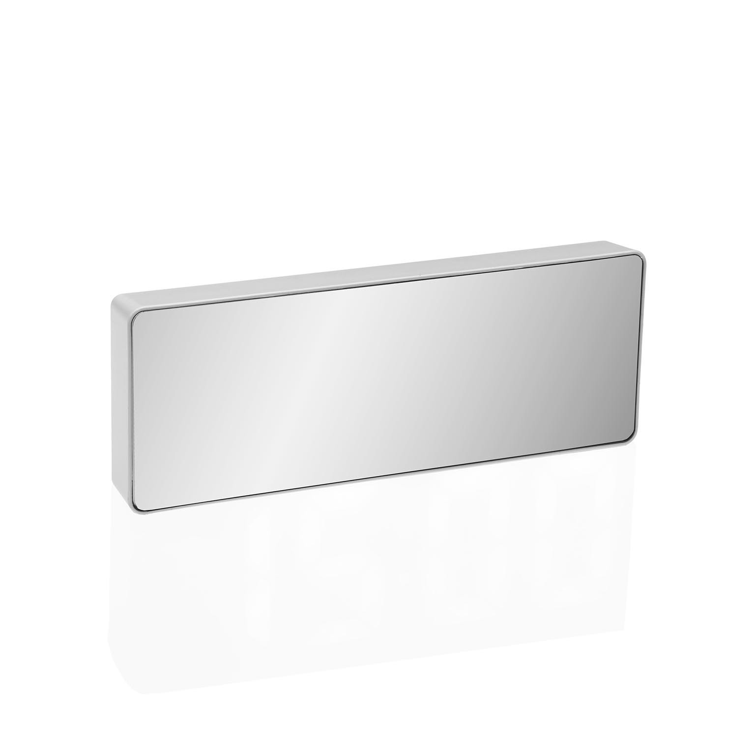 Com dimensões compactas de 2,5 cm de altura, 6 cm de largura e 16,2 cm de comprimento, este despertador apresenta uma estrutura em ABS com um acabamento espelhado que reflete a luz, ampliando visualmente os ambientes.