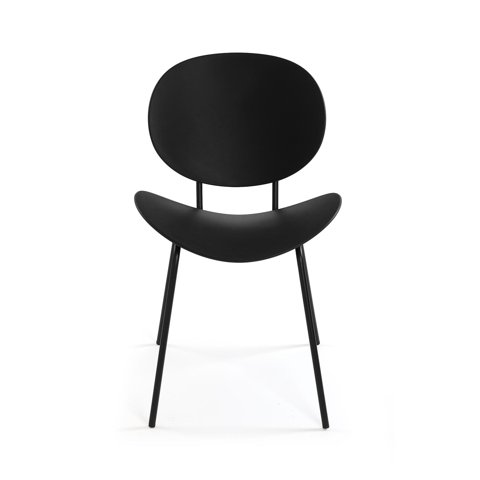A cadeira Neko na cor preto é uma peça moderna e minimalista, ideal para cozinhas e áreas de refeições.