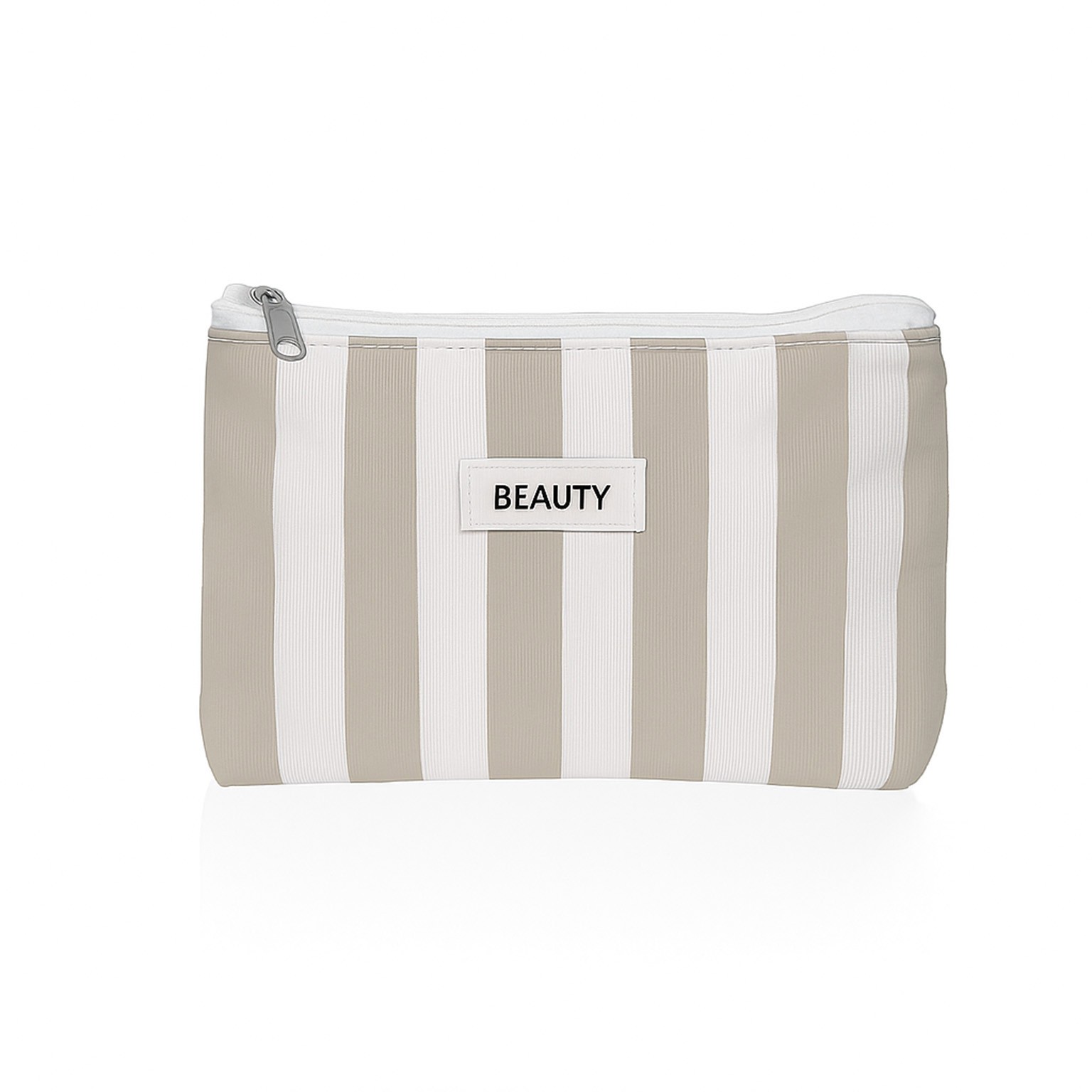 O nécessaire pequeno lintea bege é uma solução prática e elegante para a arrumação de produtos de higiene e beleza.